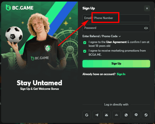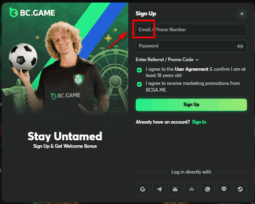- Create password. Follow BC.Game’s guidelines for a strong password.